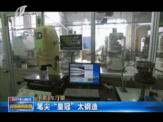 這是一種來自瑞士公司的筆頭一體化生產(chǎn)設(shè)備,生產(chǎn)一個(gè)小小的圓珠筆頭需要二十多道工序。筆頭里面有不同高度的臺(tái)階和五條引導(dǎo)墨水的溝槽,加工精度都要達(dá)到千分之一毫米的數(shù)量級(jí)。